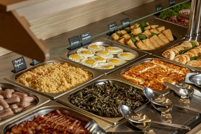 Советуем бронировать номер с завтраком так как здесь он выше всяких похвал. Богатая шведская линия в которой есть не только красная рыбка но даже наша любимая масляная.