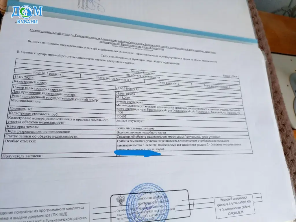 Земельный участок по адресу х. Тысячный, ул. Гагарина, 75.